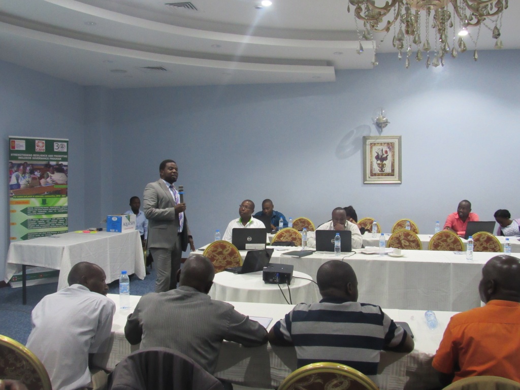 Mr. Muhindo James of ACODE conducting election of the new steering committee of Uganda Forest Working Group (UFWG), which took place on 12th March 2020 at Imperial Royale Hotel in Kampala